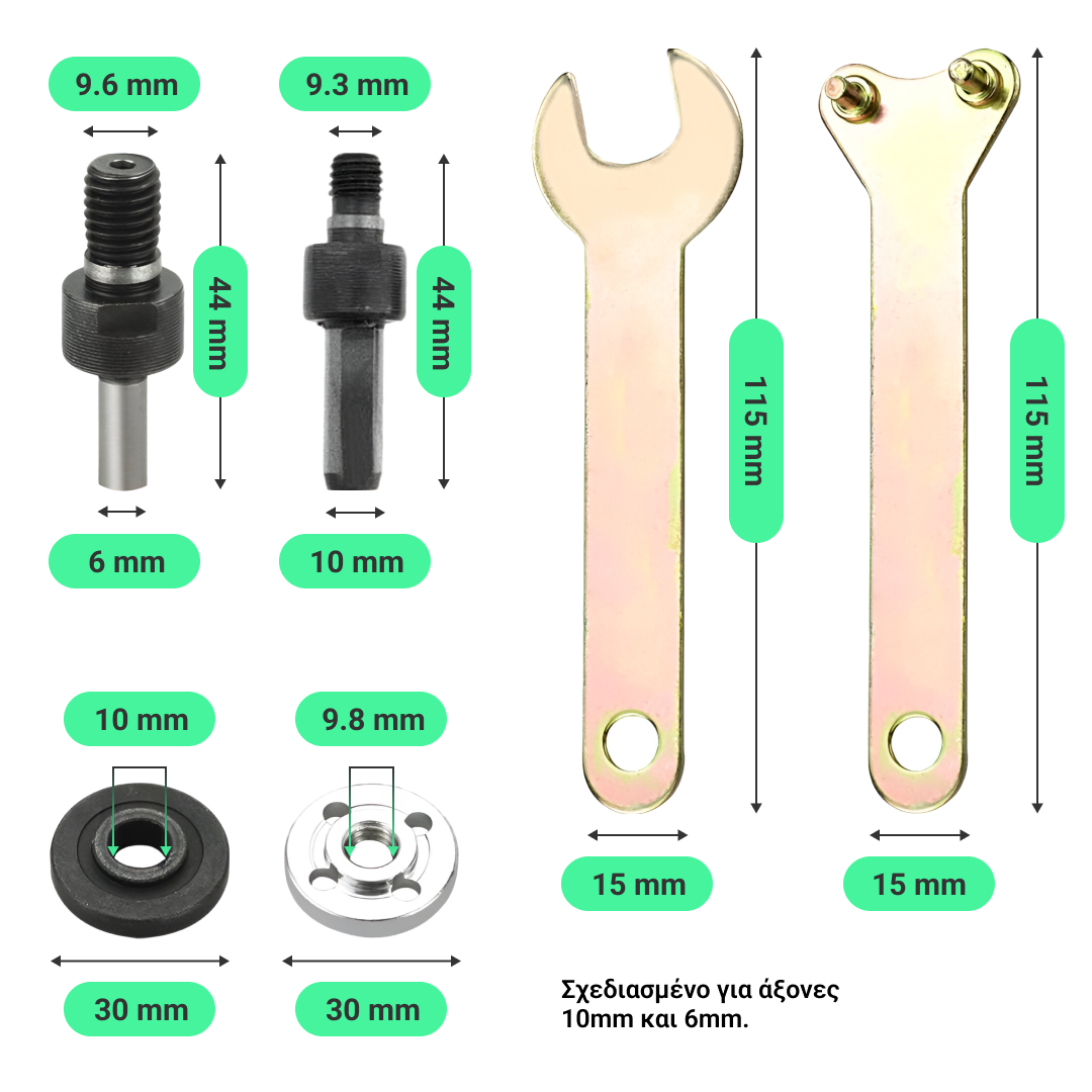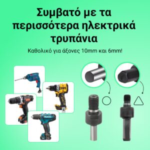 - Τύπος άξονα μετατροπής: στρογγυλός άξονας 6 χιλ και γωνιακός άξονας 10 χιλ