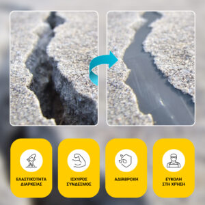 - Καθολική εφαρμογή – Ιδανικό για τοίχους, δάπεδα, στέγες, βεράντες, μπάνια και πολλά άλλα.