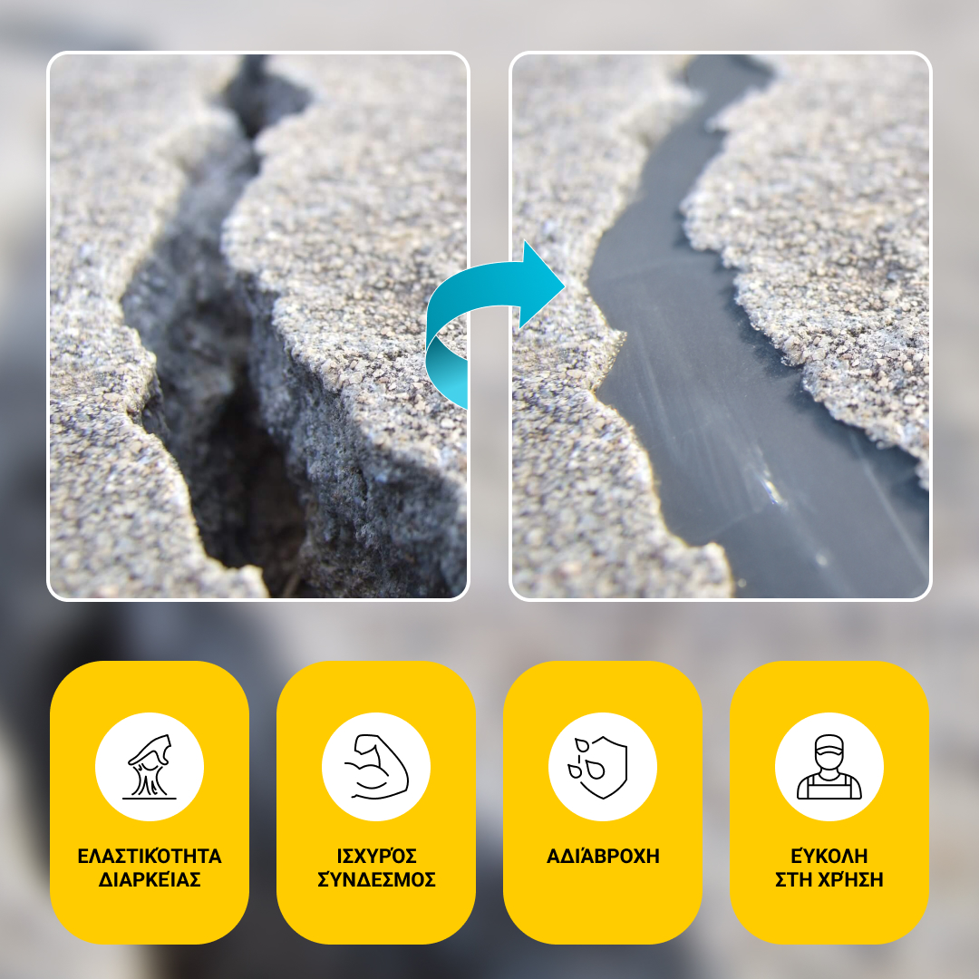 - Σφραγίζει ρωγμές και διαρροές νερού
