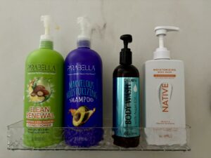 Από την πρώτη μέρα είμαι πολύ ικανοποιημένη. Το διάφανο ράφι δείχνει κομψό πάνω στα πλακάκια, η κατασκευή από PET και ABS φαίνεται στιβαρή και η εγκατάσταση χωρίς τρύπημα ήταν απλή. Χώρος για όλα τα σαμπουάν μου.